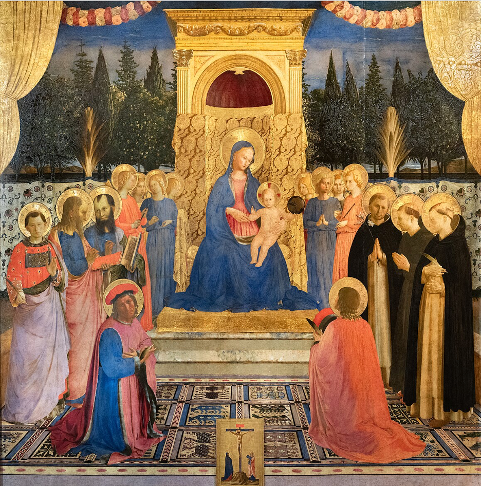 The rich dimensions of the program came to mind again and again as I visited the special exhibition of Beato Angelico’s work in Florence. He was a Dominican friar and artist known for introducing new ways of capturing the sacred at the start of the Renaissance. He opened up the sensibilities of others at the time by capturing the life of Christ with images that were more realistic and full of movement than the art of the Middle Ages. Even the fruit and flora are captured with botanical precision. But beyond his innovative techniques and mastery he endures as one of the greats because his works express a deep faith and call to contemplation. He encouraged individual reflection, shown by his painting a scene from Jesus’ life in each monk’s cell at the Monastery of San Marco in Florence, where he was abbot. But he didn’t focus exclusively on solitary prayer, as he painted for sacred, public spaces. And he showed that contemplation was not just an individual act. His Altar for the monastery of San Marco is a great example.